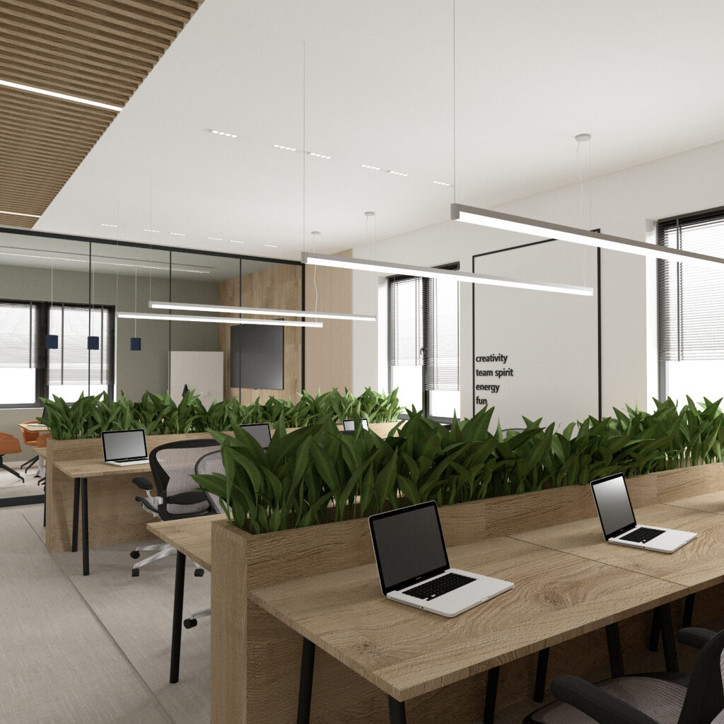 Projektujemy również wnętrza komercyjne. Pomagamy w stworzeniu przestrzeni, dostosowując projekt do potrzeb i specyfiki działalności. Chcemy, żeby miejsce, które zaprojektujemy, spełniało wszystkie oczekiwania i pomagało w rozwoju biznesu.